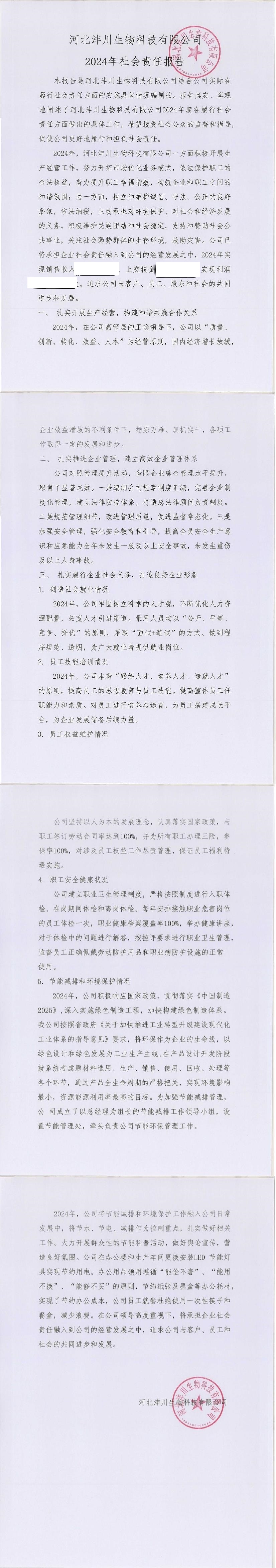 河北灃川生物科技有限公司--2024年社會責(zé)任報告
